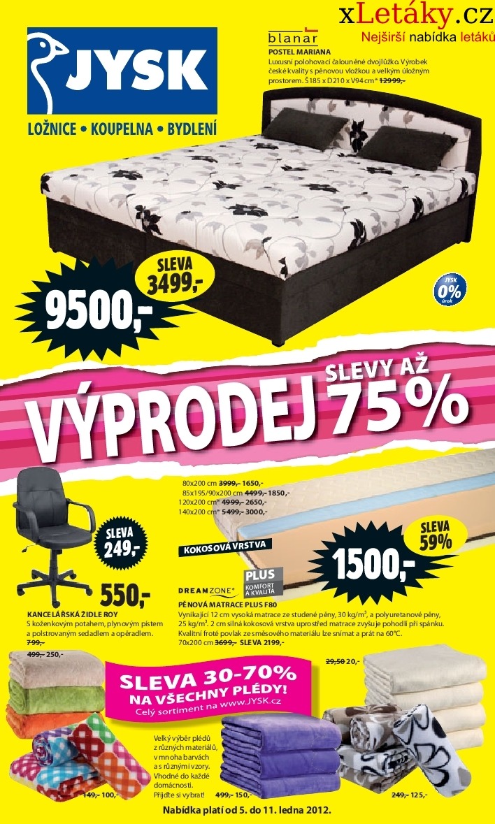 Jysk aktuální leták 05.01. - 11.01.2012