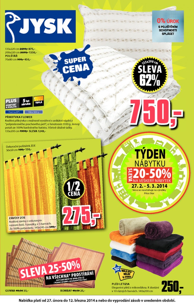 Jysk Nabídka týdne od 27.2.2014 27.2.2014- 12.3.2014